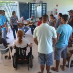 O professor disse que todas as pessoas podem participar. Se alguma estiver com algum problema de saúde ou laudo médico, a participante fará exercícios específicos de acordo com a orientação médica.