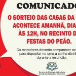 A CDHU (Companhia de Desenvolvimento Habitacional e Urbano) realizou no sábado (20), no recinto de exposições “Odilon Ferreira de Almeida”, sorteio de 130 casas para o conjunto habitacional Buritama G2. As moradias são dotadas de dois dormitórios, sala, cozinha, área de serviço e banheiro, com uma área construída de aproximadamente 57 metros quadrados.