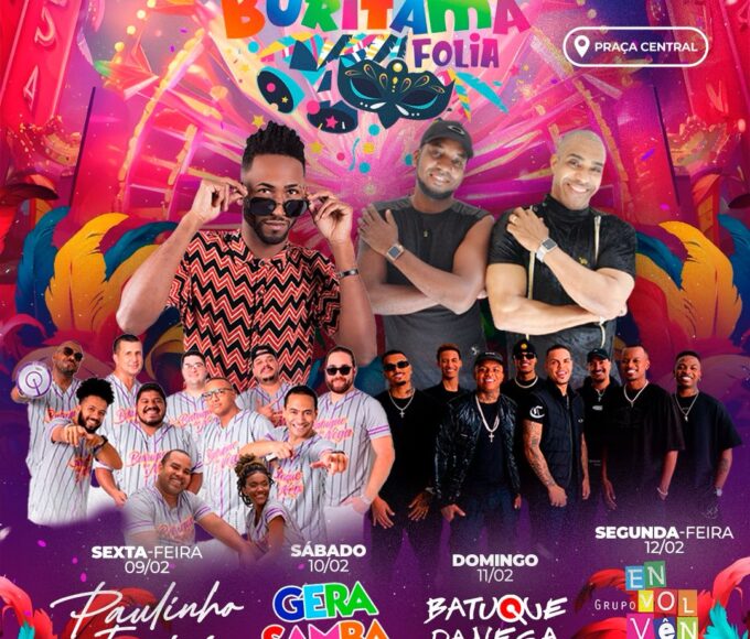 Estão confirmados para o Buritama folia shows com Sambô, Homem de Lata, Companhia do Pagode e Banda Emoções. Este ano, durante o carnaval, acontece ainda a 14ª Festa do Milho, organizada pela Santa Casa de Misericórdia São Francisco. O evento começa a partir 19h30, no centro da cidade.