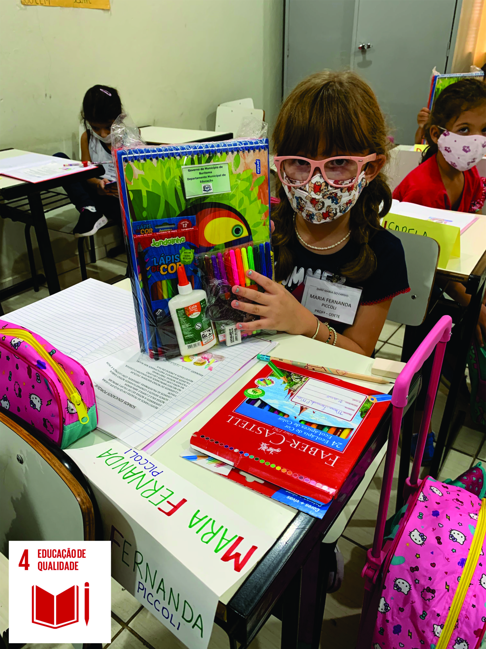 Os kits de materiais e uniformes chegaram recheados para a alegria de cada criança e conta com cadernos de capa dura, caderno de desenho, caixas de lápis de cor, lápis para escrever, réguas, tesouras, caixa de giz de cera e um jogo de canetinhas, já para o 4° e 5° ano foram acrescentadas canetas. O combo uniforme é composto por duas camisetas, duas bermudas, uma calça cumprida, uma jaqueta de frio e dois pares de meias.