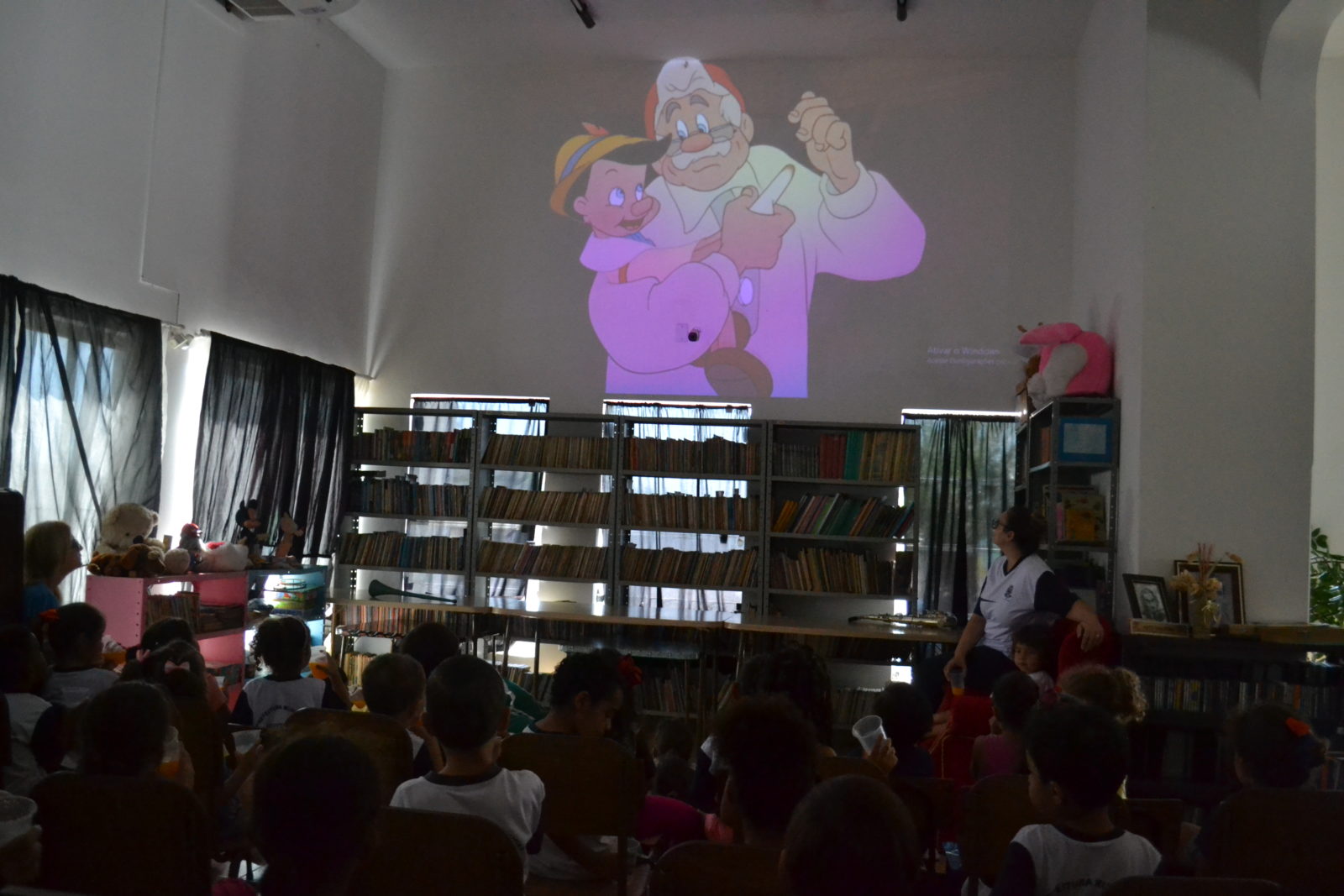 O Departamento de Cultura realizou hoje (12), sessão de cinema na Biblioteca Municipal, com a exibição do filme infantil ‘Pinóquio’, com público limitado. O filme faz parte da programação do Ponto MIS e oferece uma programação gratuita para todas as idades.