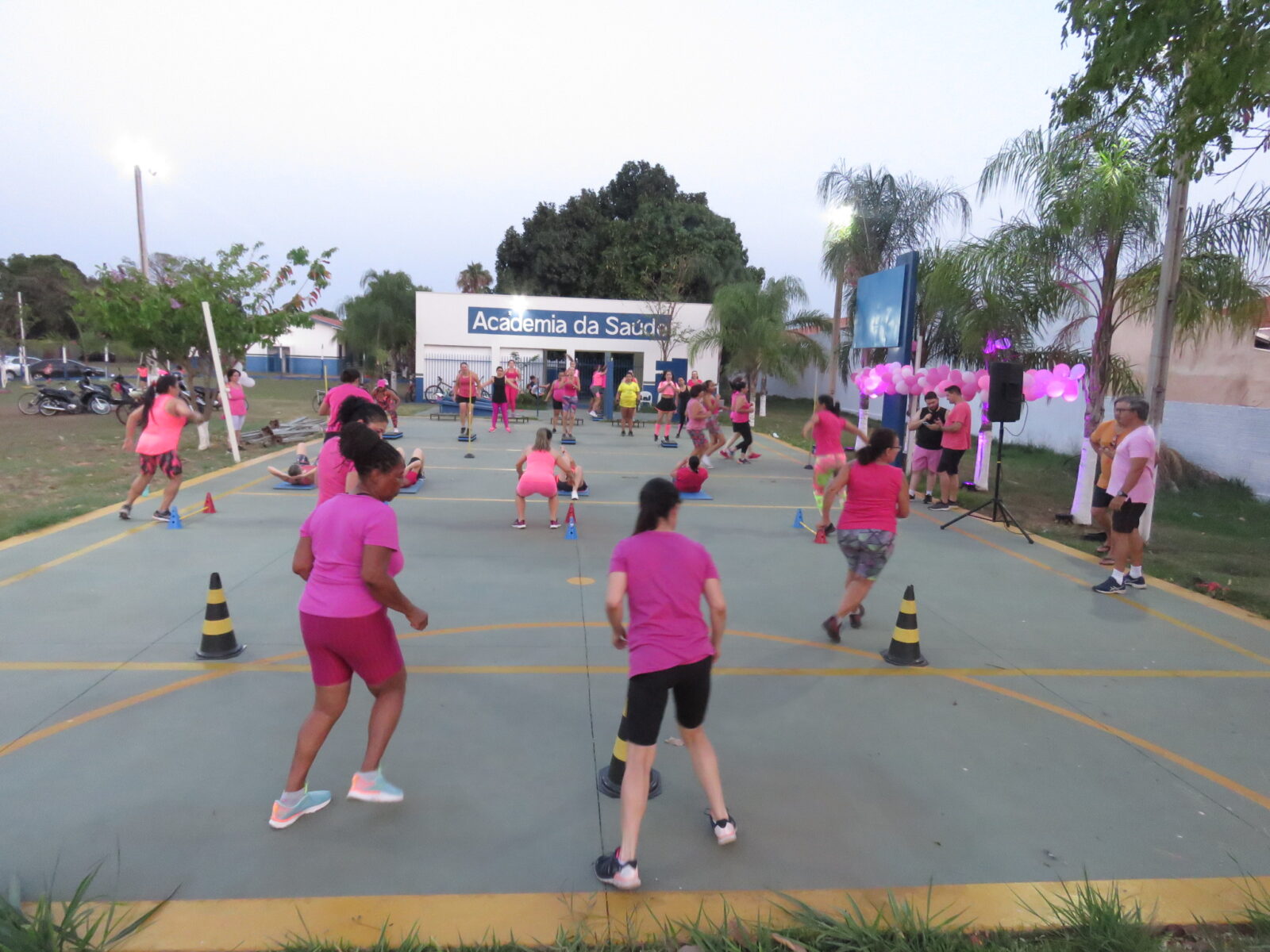 A academia de Saúde de Buritama promoveu nesta quinta-feira (5), aula com exercícios funcionais, zumba e Fit Dance para conscientizar sobre o câncer de mama por meio da campanha ‘Outubro Rosa’. O objetivo da ação foi reunir todas as alunas e a população para dar visibilidade a campanha de orientação e prevenção à doença.