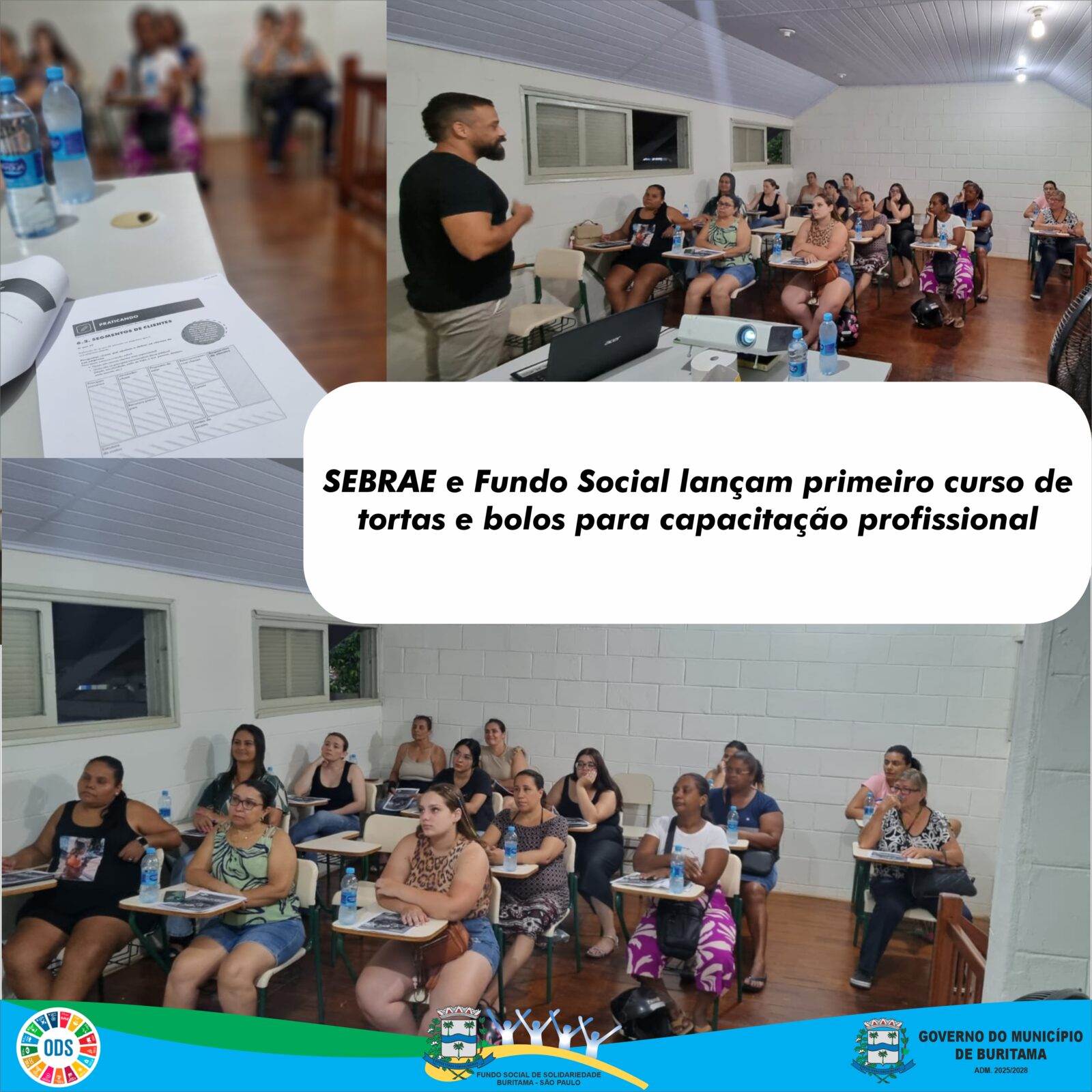 O Serviço Brasileiro de Apoio às Micro e Pequenas Empresas (Sebrae), em parceria com o Fundo Social, deu início ao primeiro curso de tortas e bolos, uma iniciativa voltada à capacitação profissional e ao fomento do empreendedorismo no setor de confeitaria.