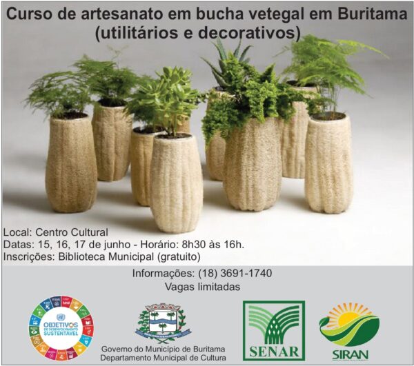 O Departamento de Cultura está com inscrições abertas para a oficina de ‘Artesanato em bucha vegetal – utilitários e decorativos’. A capacitação acontece...