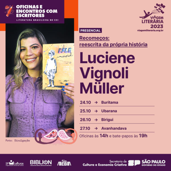 A escritora Luciene Vignoli Müller estará na Biblioteca Municipal de Buritama na próxima terça-feira (24) para oficina ‘Recomeços: reescrita da própria história’ e...